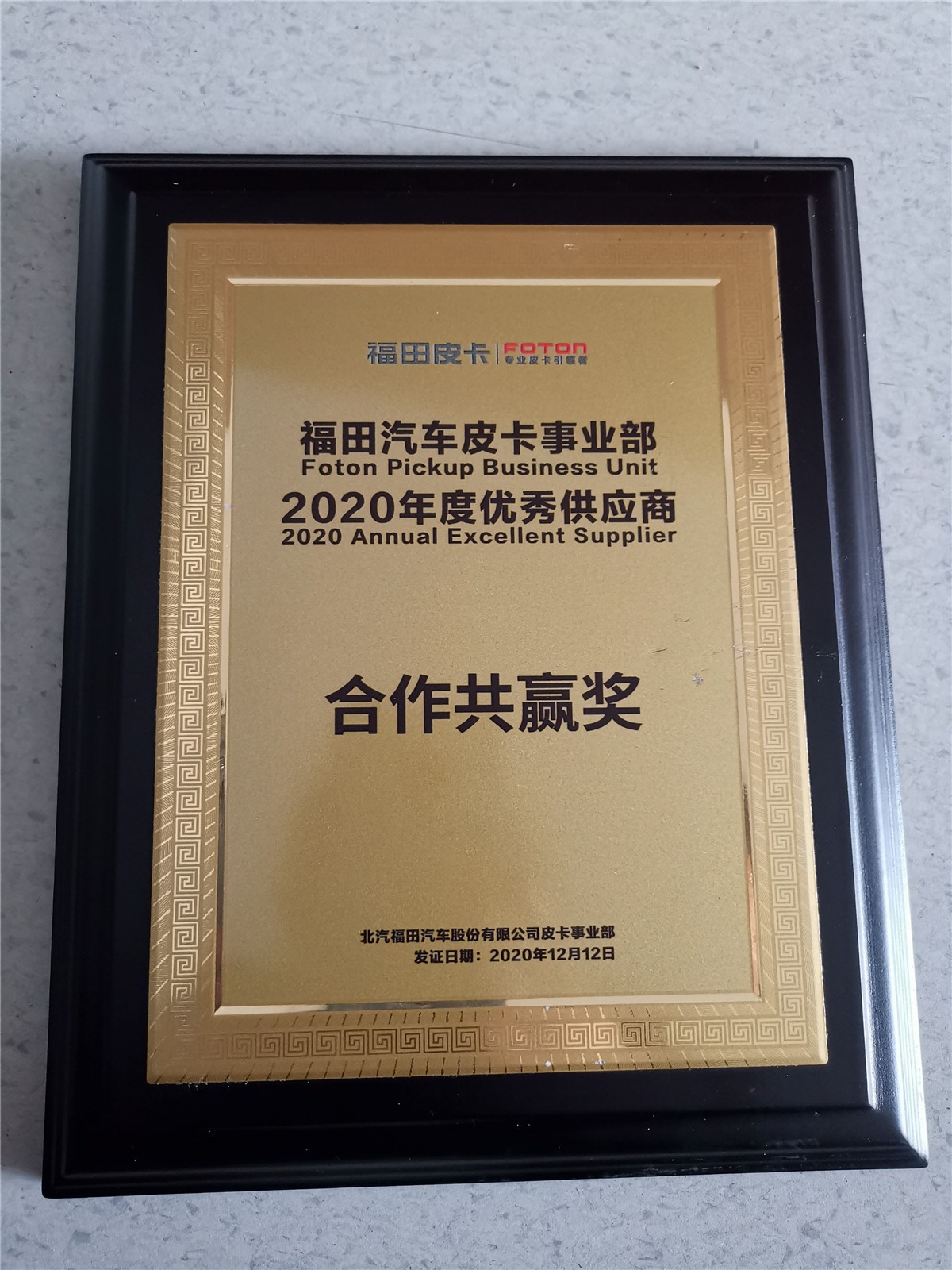 2020年度優(yōu)秀供應商 合作共贏 證書-福田汽車