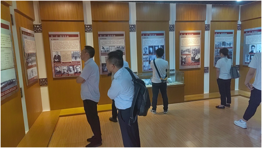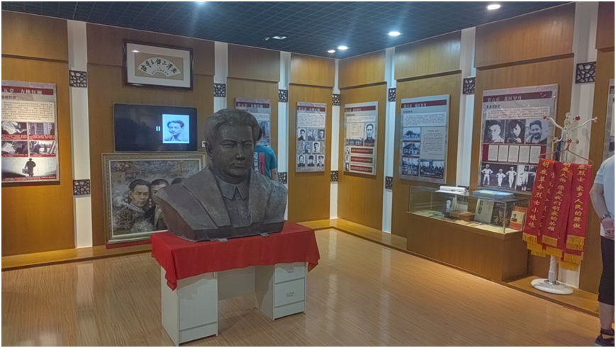 講解員帶領(lǐng)大家參觀高敬亭烈士紀(jì)念館,新四軍第四支隊(duì)是一支傳奇的部隊(duì),高敬亭更是位傳奇的人物,在內(nèi)無(wú)糧草,外無(wú)援兵的艱難環(huán)境下,仍堅(jiān)持三年艱苦卓絕的敵后游擊戰(zhàn),以不足2000人的兵力,轉(zhuǎn)戰(zhàn)于湖北、河南、安徽三省的45個(gè)縣,與敵人大小戰(zhàn)斗數(shù)百次,牽制敵正規(guī)軍68個(gè)團(tuán),粉碎敵人的反復(fù)“清剿”,支援主力紅軍的戰(zhàn)略轉(zhuǎn)移,配合了南方紅軍的游擊戰(zhàn)爭(zhēng)。在抗日戰(zhàn)爭(zhēng)期間,成功的組織了蔣家河伏擊戰(zhàn)等著名戰(zhàn)斗,打擊了日寇的囂張氣焰,為抗日民族統(tǒng)一戰(zhàn)線作出了巨大貢獻(xiàn)。