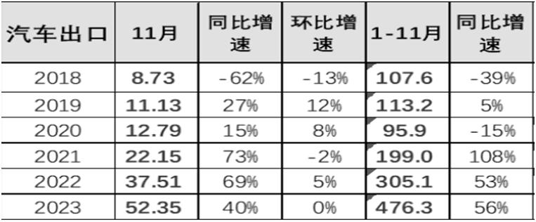 中國于2009年超越美國成為全球最大的汽車生產(chǎn)國和消費(fèi)國。據(jù)中國汽車工業(yè)協(xié)會公布報(bào)告顯示,2023年1-11月中國汽車實(shí)現(xiàn)出口476.3萬臺,出 口增速56%的持續(xù)強(qiáng)增長。中國已成為新能源汽車最大的生產(chǎn)國和出口國,約占世界的一半。在這個意義上,中國汽車產(chǎn)業(yè)已經(jīng)換道超車,從“跟隨者”變成“領(lǐng)跑者”,正引領(lǐng)著這場波瀾壯闊的全球汽車革命,這也是中國從汽車大國邁向汽車強(qiáng)國的重要里程碑。