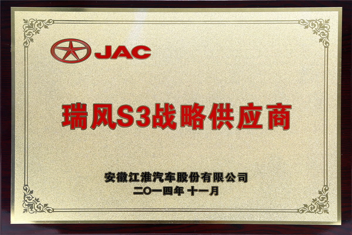 2014年11月 年瑞風(fēng)S3戰(zhàn)略供應(yīng)商