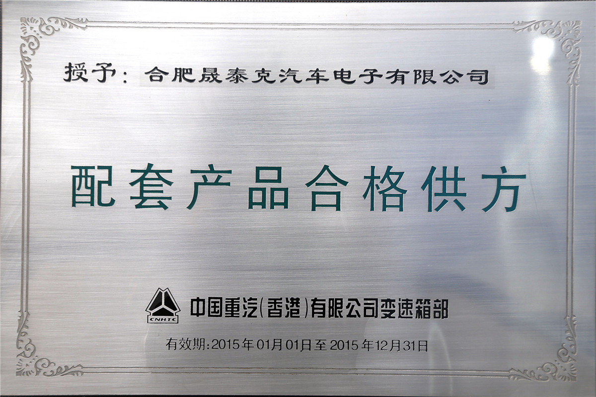 2015年 配套產(chǎn)品合格供方中國重汽有限公司變速箱部