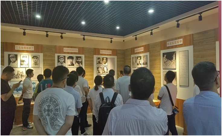 講解員帶領(lǐng)大家參觀高敬亭烈士紀(jì)念館,新四軍第四支隊(duì)是一支傳奇的部隊(duì),高敬亭更是位傳奇的人物,在內(nèi)無(wú)糧草,外無(wú)援兵的艱難環(huán)境下,仍堅(jiān)持三年艱苦卓絕的敵后游擊戰(zhàn),以不足2000人的兵力,轉(zhuǎn)戰(zhàn)于湖北、河南、安徽三省的45個(gè)縣,與敵人大小戰(zhàn)斗數(shù)百次,牽制敵正規(guī)軍68個(gè)團(tuán),粉碎敵人的反復(fù)“清剿”,支援主力紅軍的戰(zhàn)略轉(zhuǎn)移,配合了南方紅軍的游擊戰(zhàn)爭(zhēng)。在抗日戰(zhàn)爭(zhēng)期間,成功的組織了蔣家河伏擊戰(zhàn)等著名戰(zhàn)斗,打擊了日寇的囂張氣焰,為抗日民族統(tǒng)一戰(zhàn)線作出了巨大貢獻(xiàn)。